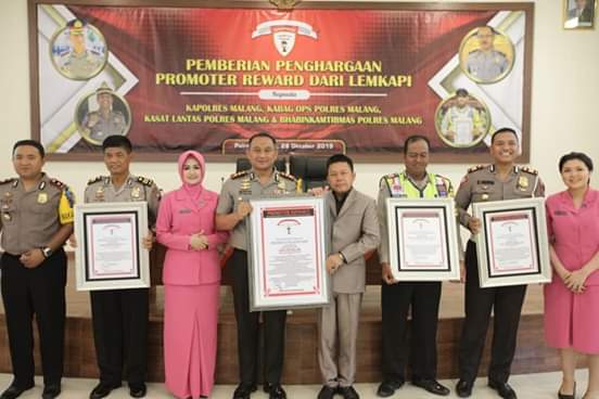 Kapolres Malang AKBP Yade Setiawan Ujung Mendapatkan Promoter Reward Sebagai KAPOLRES TELADAN dari Lemkapi. Penghargaan Tersebut Langsung Diserahkan Oleh Direktur Eksekutif Lemkapi (Lembaga Kajian Strategis Kepolisian Indonesia) DR. Edy Hasibuan,SH,MH di Mapolres Malang Pada Hari Senin 28 Oktober 2019 Bertepatan Dengan Peringatan Hari Sumpah Pemuda.