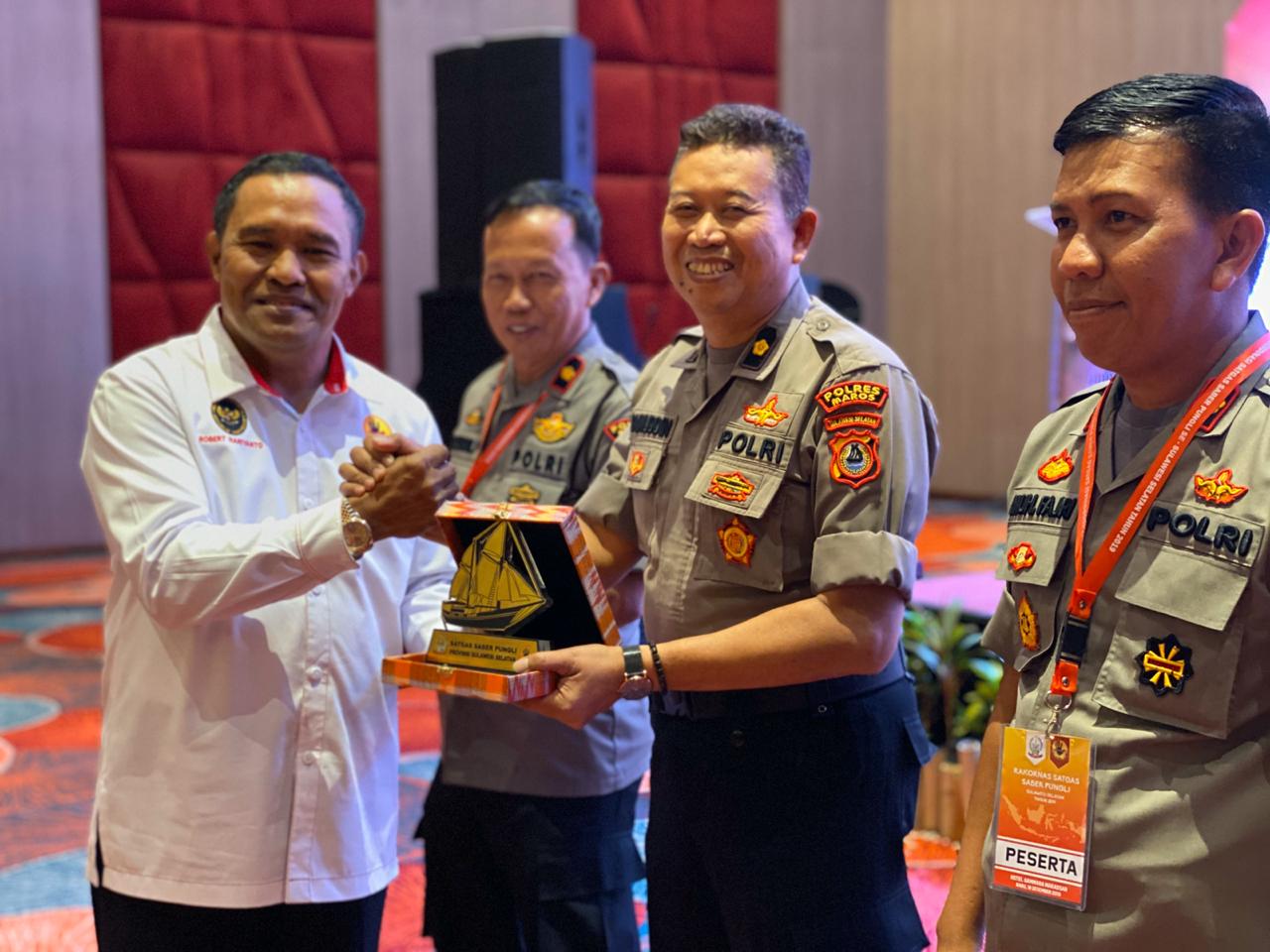 “Alhamdulillah, stand kita meraih juara kedua”, Tutur Kompol Saenuddin usai menerima penghargaan pada kegiatan Rakor Satgas saber Pungli Sesulawesi selatan.