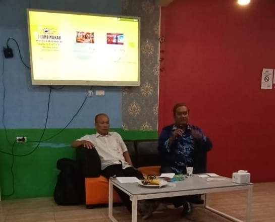 Sejumlah wartawan yang berasal dari Aceh Tamiang menggelar pelatihan jurnalistik di Kota Medan, Juma’t (28/2/2020). Pelatihan yang berlangsung di Stadion Kafe Jalan Jati 2 No. 1 Medan Teladan, Kota Medan, dikarenakan belum mendapat kesempatan pelatihan dari Pemerintah Kabupaten (Pemkab) Aceh Tamiang.