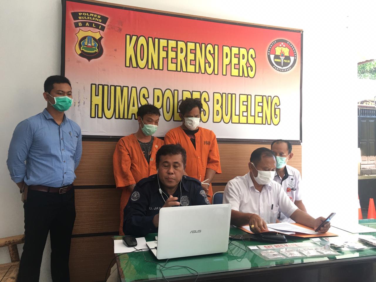 Tersangka pelaku ditangkap pada Jumat (3/4/2020) sekitar Pukul 12.15 Wita di kebun yang ada di Jalan Telabah Lantang, Banjar Dinas Beji, Desa Sangsit, Kecamatan Sawan, Kabupaten Buleleng, Bali dengan barang bukti berupa 1 kantong palstik klip berisi 4 gulungan palstik klip yang masing-masing didalamnya terdapat butiran kristal bening yang diduga narkotika jenis sabu dengan Kode A berat 0,27 gram brutto (0,07 gram netto), kode B berat 0,26 gram brutto (0,06 gram netto), kode C berat 0,28 gram brutto (0,08 gram netto), Kode D berat 0,28 gram brutto ( 0,08 gram netto) dengan total berat 1,09 gram brutto (0,29 gram netto ). 1 bong alat hisap sabu, 1 pipet kaca dan 1 korek api gas.