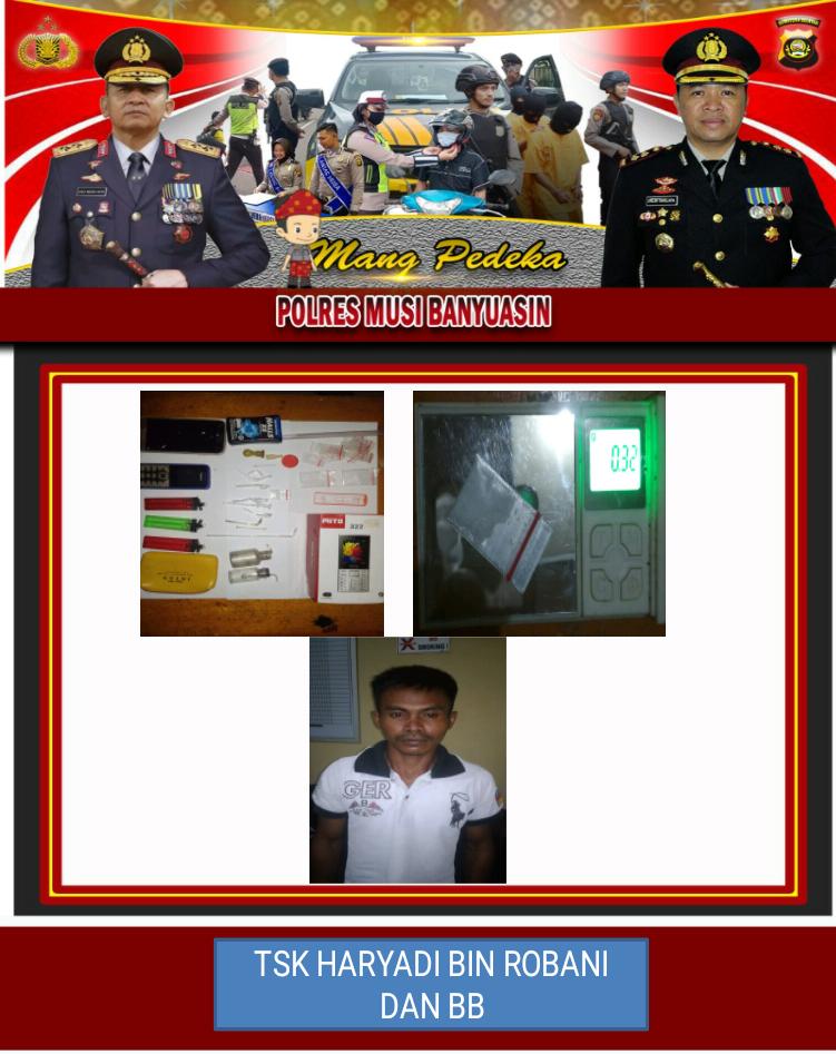 HARIYADI (32), Pengedar yang merupakan warga Dusun V Desa Bumi Kencana Kecamatan. Sungai Lilin Kabupaten. Musibanyuasin. Di ringkus Unit Reskrim Polsek Sungai Lilin Resort Muba, Minggu, (23/08/2020) sekira jam 15.00 Wib.
