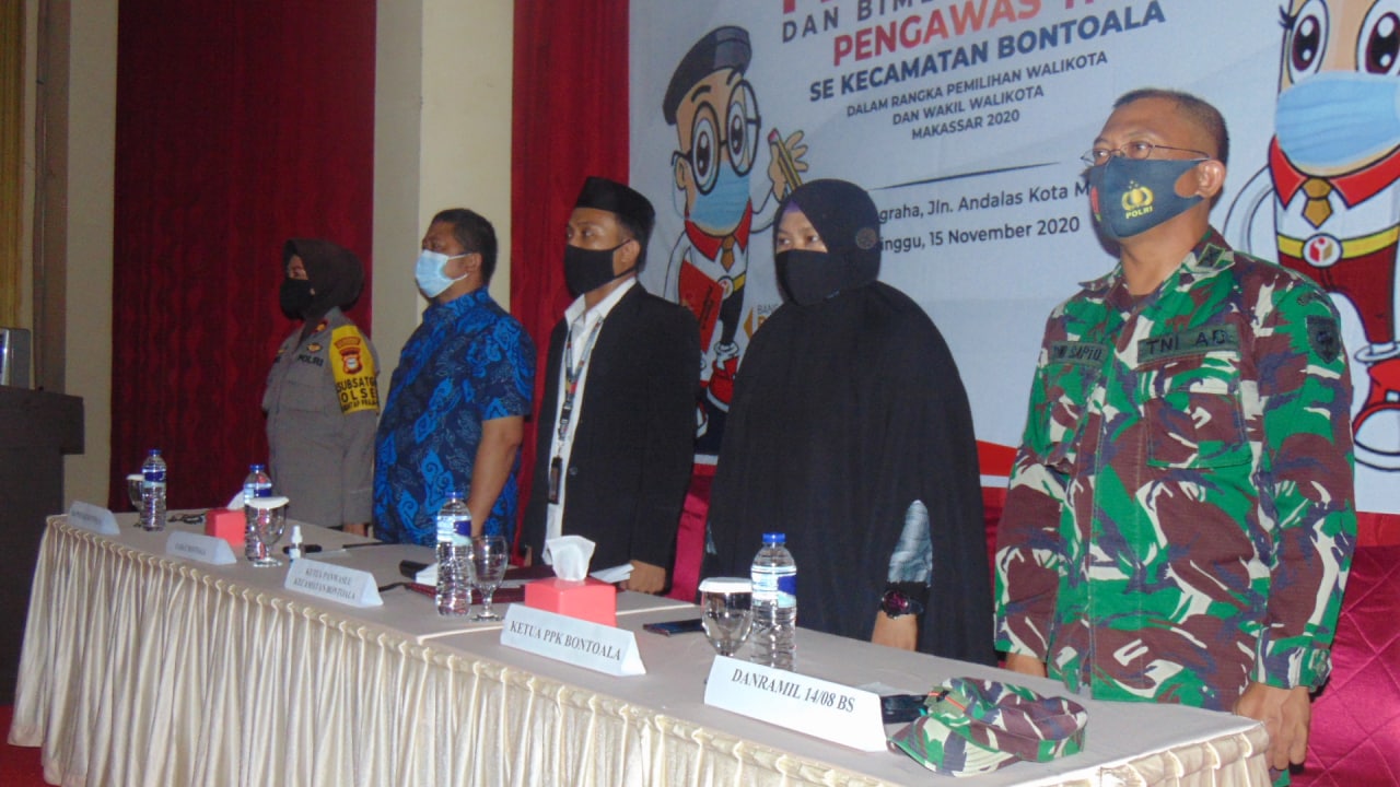 Kepala Sekertariat Panwaslu Kecamatan Bontoala, Bpk.Syahril, Kepala Kecamatan Bontoala, Bpk.Syamsul Bahri.Sip, Danramil Bontoala, Mayor Inf Dwi Sapto Wibowo Ketua Panwas kecamatan Bontoala, Ahmad Ahsanul fadhil.S.P.I, dan anggota Pengawas TPS sebanyak 98 orang.