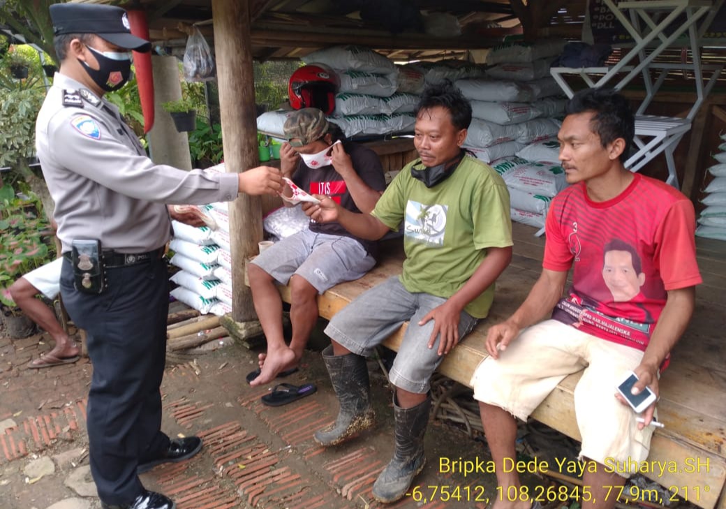 Dalam kesempatan itu, Bripka Dede Yaya Suharya memberikan himbauan dan edukasi tentang apa itu Corona virus dan bagaimana cara memutus rantai penyebaran Corona virus sekaligus mensosialisasikan instruksi dari Pemerintah dan juga Maklumat Kapolri dalam