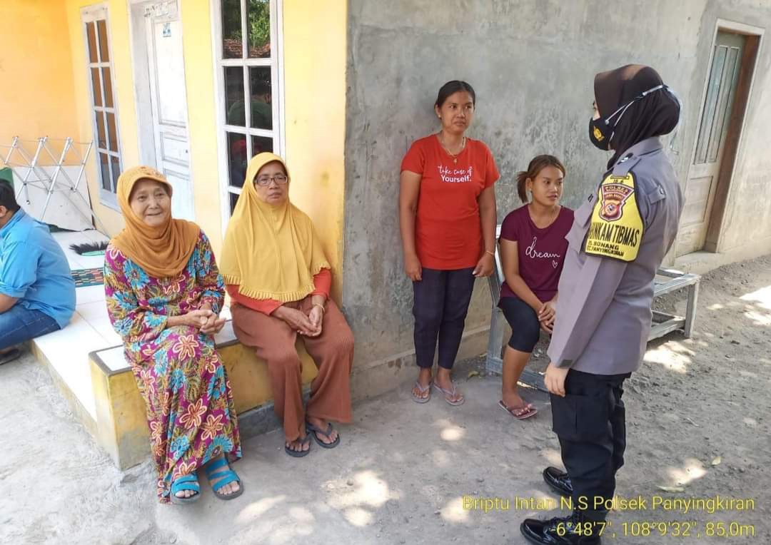 Bhabinkamtibmas Desa Bonang Polsek Panyingkiran Polres Majalengka Briptu Intan Nurmala Sari sampaikan himbauan kepada warga binaannya. Rabu (19/5/2021).