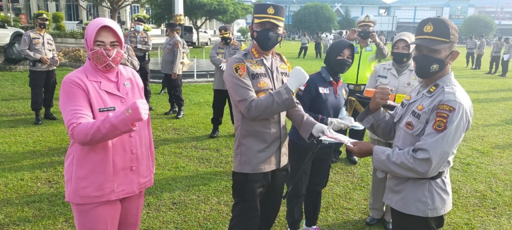 Rasa kepedulian pimpinan terhadap anggotanya, usai apel rutinitas dilapangan Mapolresta Jambi, Kapolresta Jambi Kombes Pol Dover Christian SIK MH bersama Wakapolresta Jambi AKBP Ruli Andi Yunianto SIK , menunjukkan kepedulian nya selaku pimpinan terhadap kesehatan dan keselamatannya , maka Kombes Pol Dover membagikan masker dan vitamin.