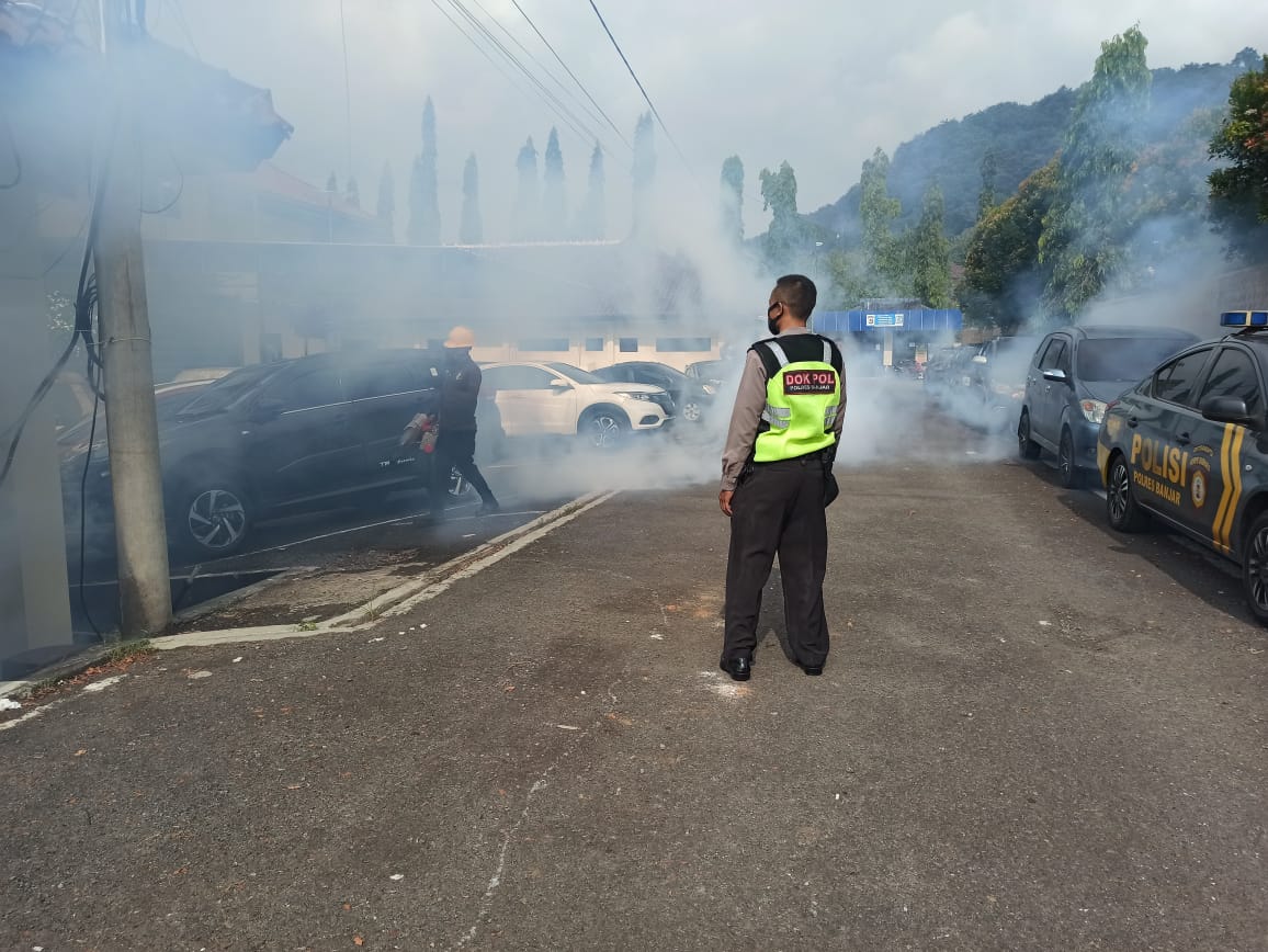 Antisipasi demam berdarah yang disebabkan oleh Nyamuk Aedes Aegypti, Mapolres Banjar di Fogging. (24/05)