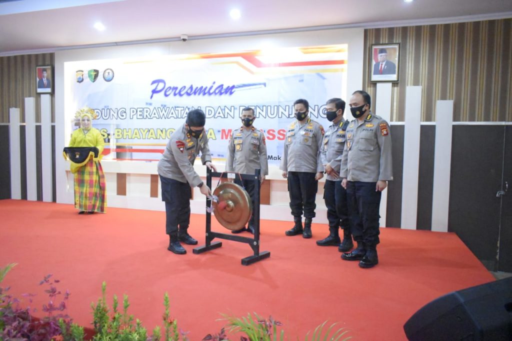 Acara persmian tersebut ditandai dengan pemukulan Gong Peresmian dan Penandatanganan Prasasti oleh Kapolda Sulsel