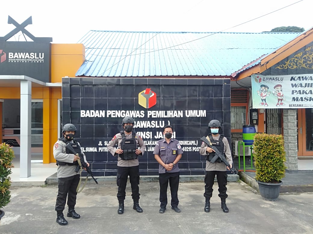 Pagi ini Personil Polda Jambi yang terlibat dalam Operasi Mantab Praja-2020 dari satgas Brimob melaksanakan Patroli ke Kantor KPUD dan Bawaslu Propinsi Jambi.