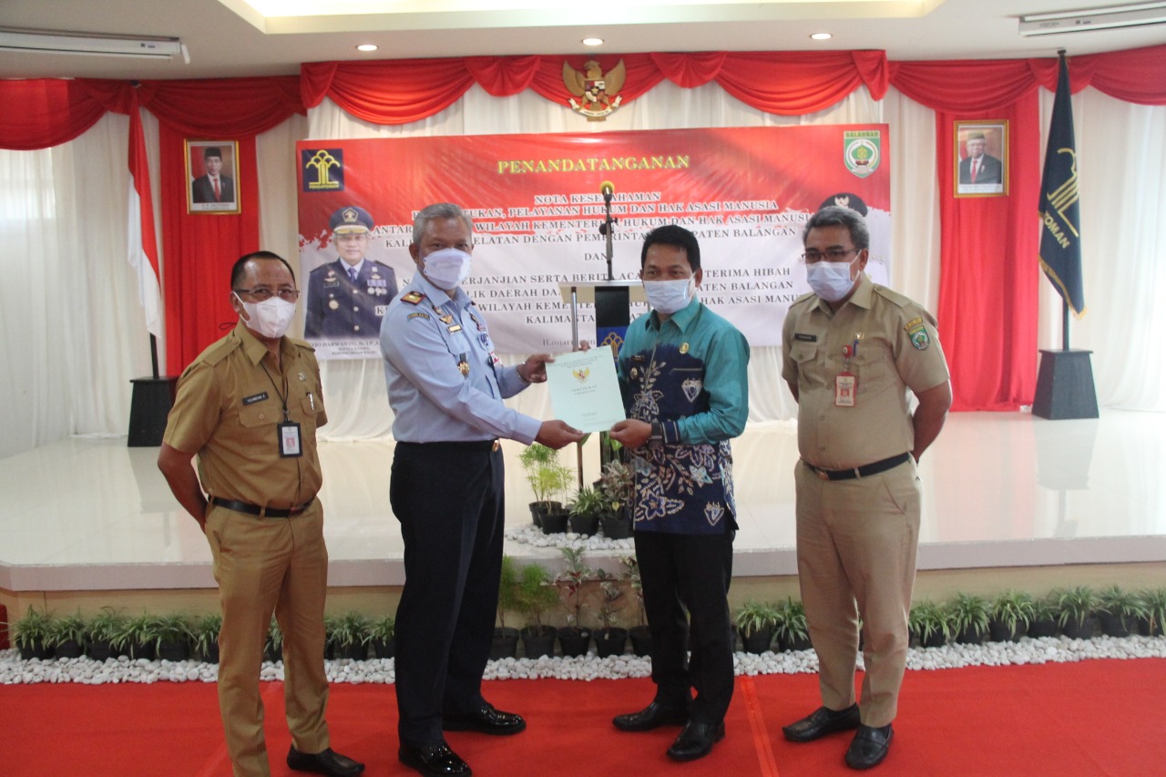 Kunjungan Bupati Balangan ini merupakan tindak lanjut dari kesepakatan Hibah Barang Milik Pemerintah Kabupaten Balangan dengan Kanwil Kemenkumham Kalsel, yang akan direncanakan untuk pembangunan Lembaga Pemasyarakatan di Kab. Balangan. Kegiatan ini tidak hanya penyerahan hibah saja, melainkan juga didahului dengan penandatanganan MoU tentang Pembentukan, Pelayanan Hukum dan HAM antara Kanwil Kemenkumham Kalsel dengan Pemerintah Kabupaten Balangan yang bertujuan untuk mewujudkan Peraturan Perundang-undangan di daerah yang harmonis, serasi dan tidak bertentangan dengan peraturan- undangan yang lebih tinggi.