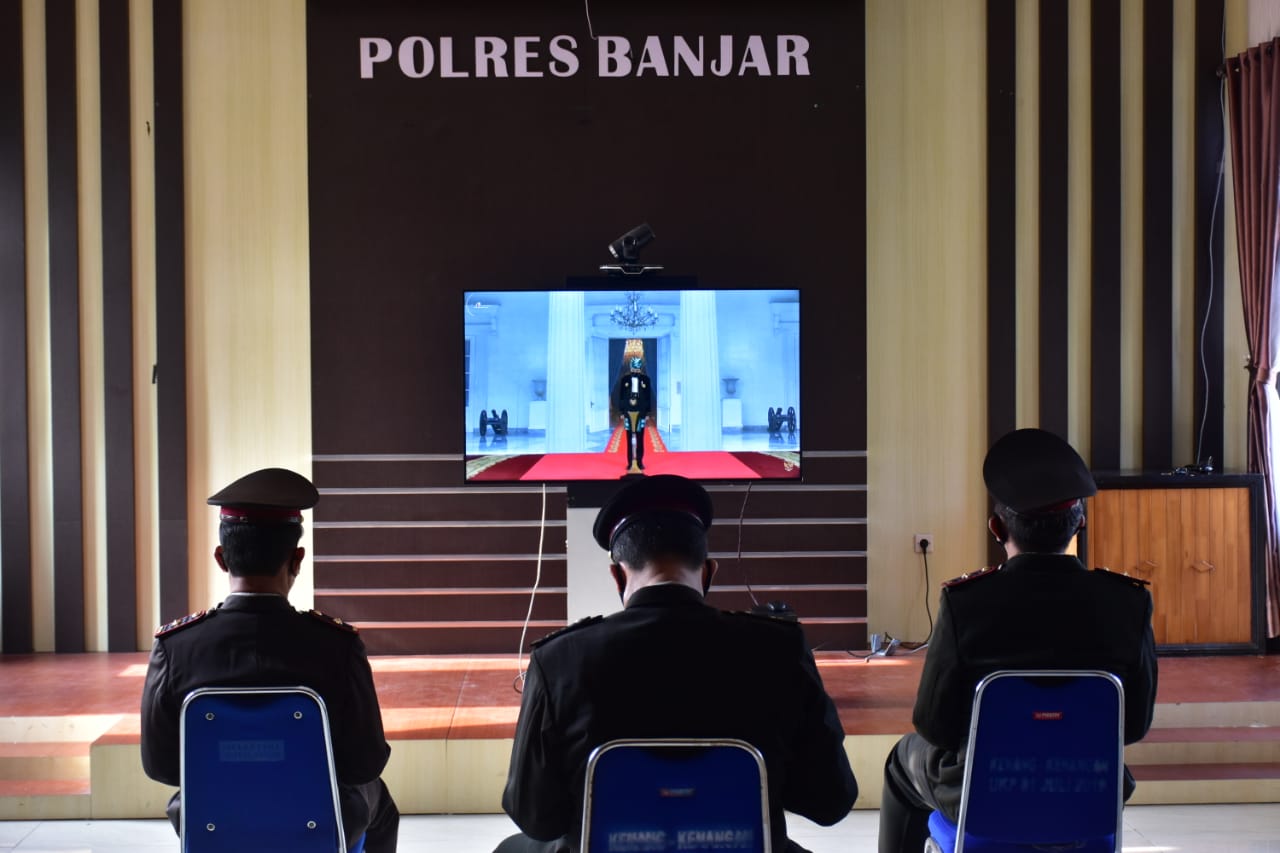 Kapolres Banjar AKBP Melda Yanny, S.I.K.,M.H. melalui Wakapolres Banjar mengatakan pelaksanaan upacara hari lahir Pancasila dilaksanakan secara daring mengingat situasi pandemi Covid-19 belum berakhir.