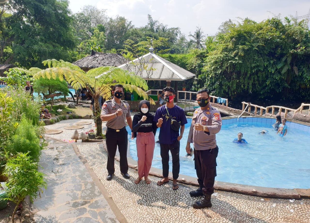 Personil Polsek Rajagaluh Polres Majalengka dalam pelaksanaan Patroli KRYD melakukan himbauan pencegahan penularan Covid-19 kepada pengunjungbObyek wisata Obyek Wisata Aryakiban Land Desa Rajagaluh Kidul Kecamatan Rajagaluh yang menikmati liburan.