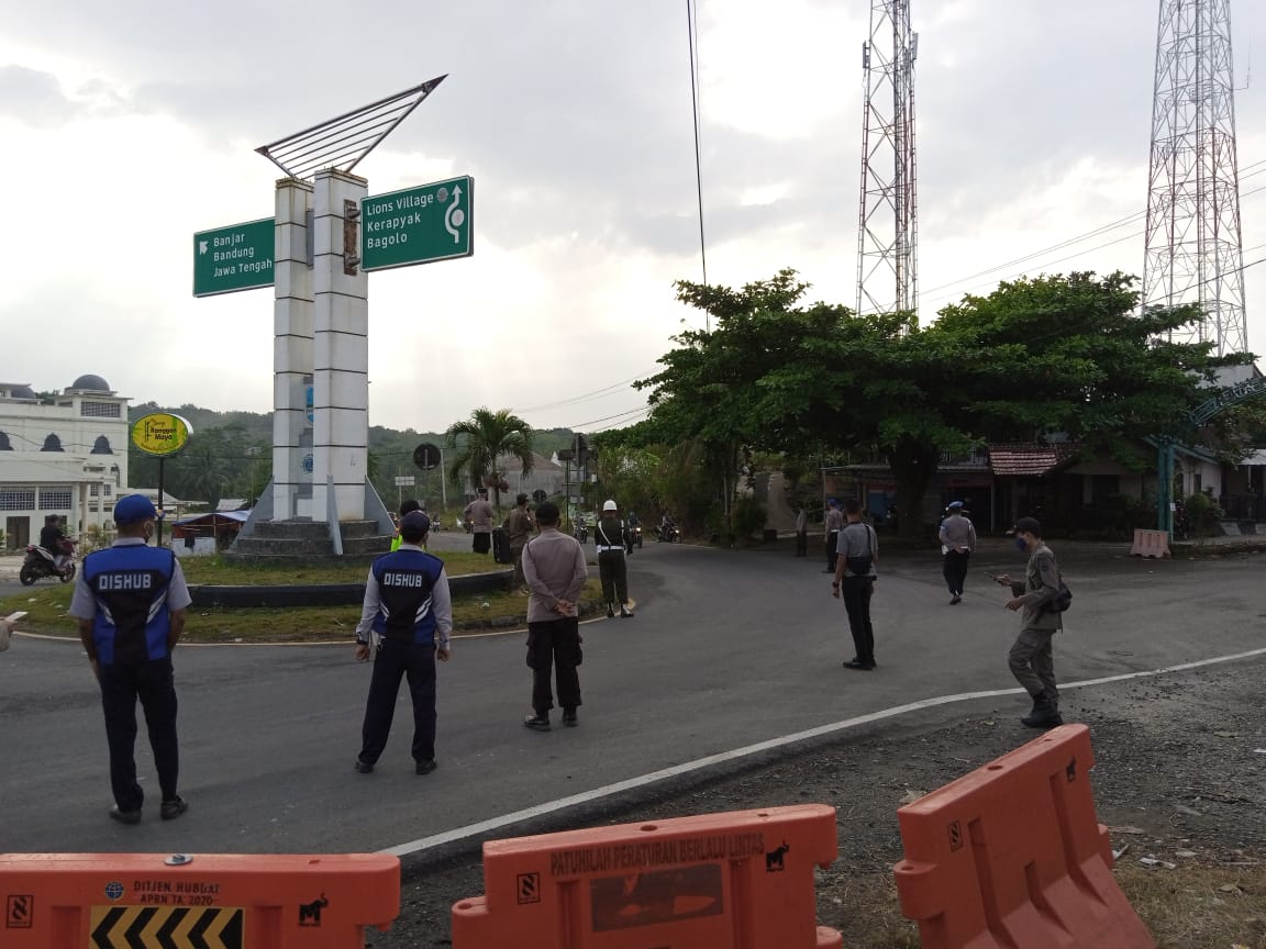 Petugas gabungan dari Polri-TNI dan Instansi Pemerintah terkait, kembali melakukan penyekatan para wisatawan di kawasan bunderan Emplak Kalipucang, Kabupaten Pangandaran, Jawa Barat, Sabtu (29/05) lalu.