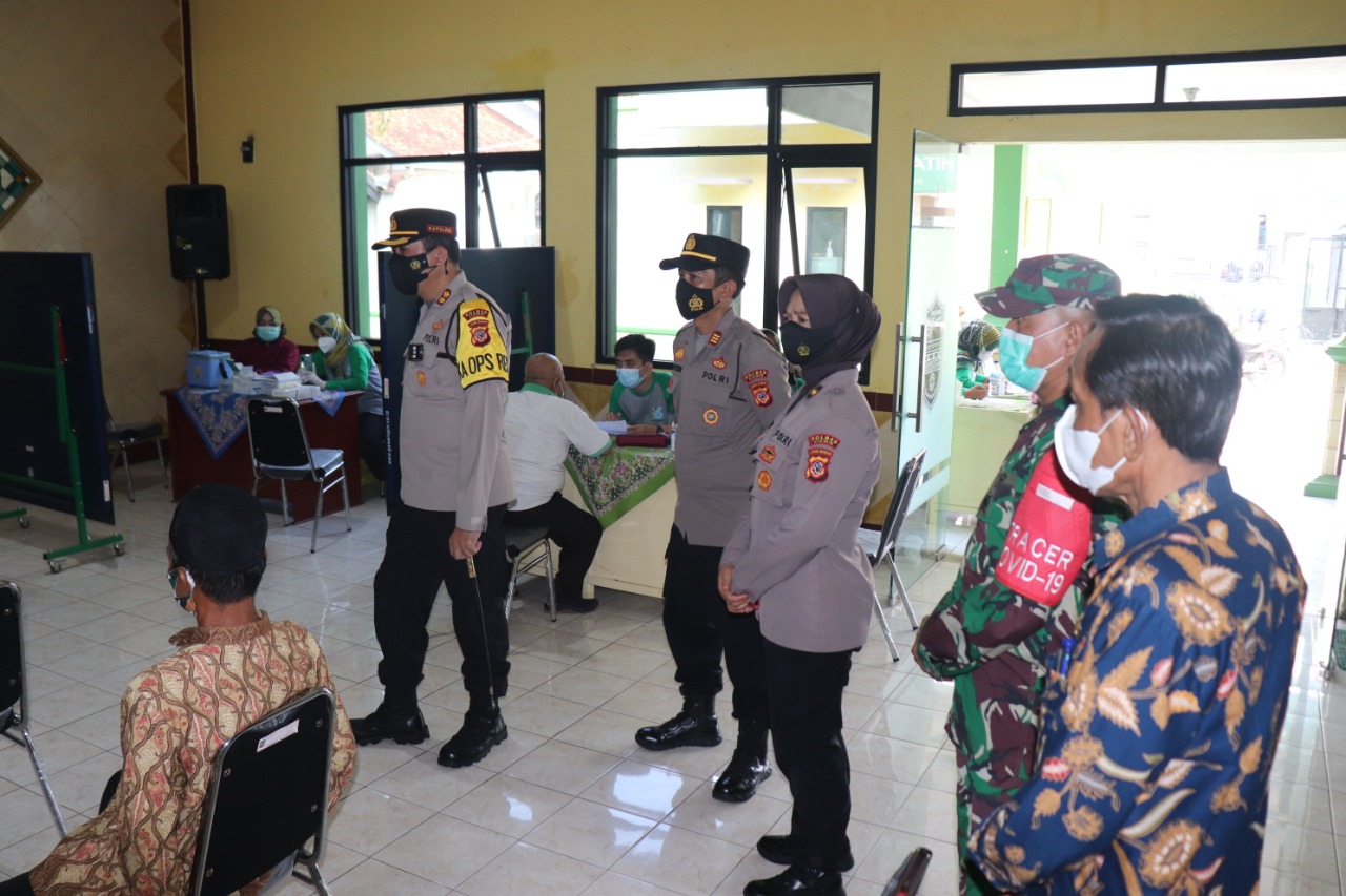 Kapolres Ciamis AKBP Hendria Lesmana, S.I.K., M.Si., melakukan pengecekan secara langsung kegiatan vaksinasi warga Desa Imbanagara. Pelaksanaan vaksinasi itu digelar di Aula Kantor Desa Imbanagara, Kabupaten Ciamis, Jawa Barat, Kamis (3 Mei 2021).