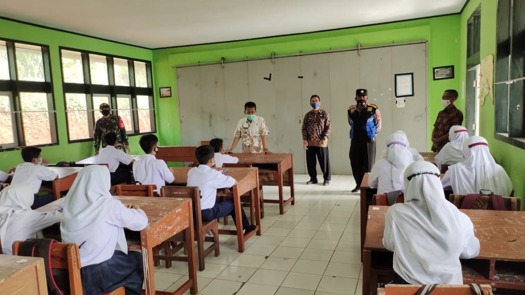 Kepolisian Sektor Rancah Polres Ciamis Polda Jabar bersama Satgas Covid-19 melaksanakan monitoring penerapan protokol kesehatan di lingkungan pendidikan yang berada di Kecamatan Rancah, Kabupaten Ciamis, Jawa Barat, Kamis (3 Juni 2021).