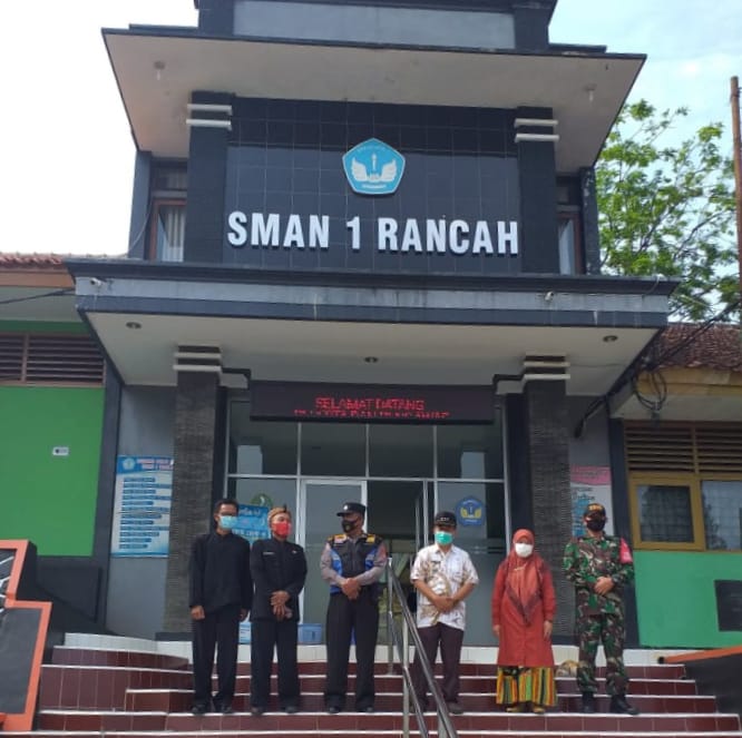 Pada kesempatan itu, Polsek Rancah menerjunkan Ps. Kanit Binmas Aiptu Jenaludin dan bersinergi dengan beberapa anggota Satgas Covid-19 tingkat Kecamatan Rancah. Adapun lokasi yang dituju diantaranya SMA N 1 Rancah dan SMP N 4 Rancah.