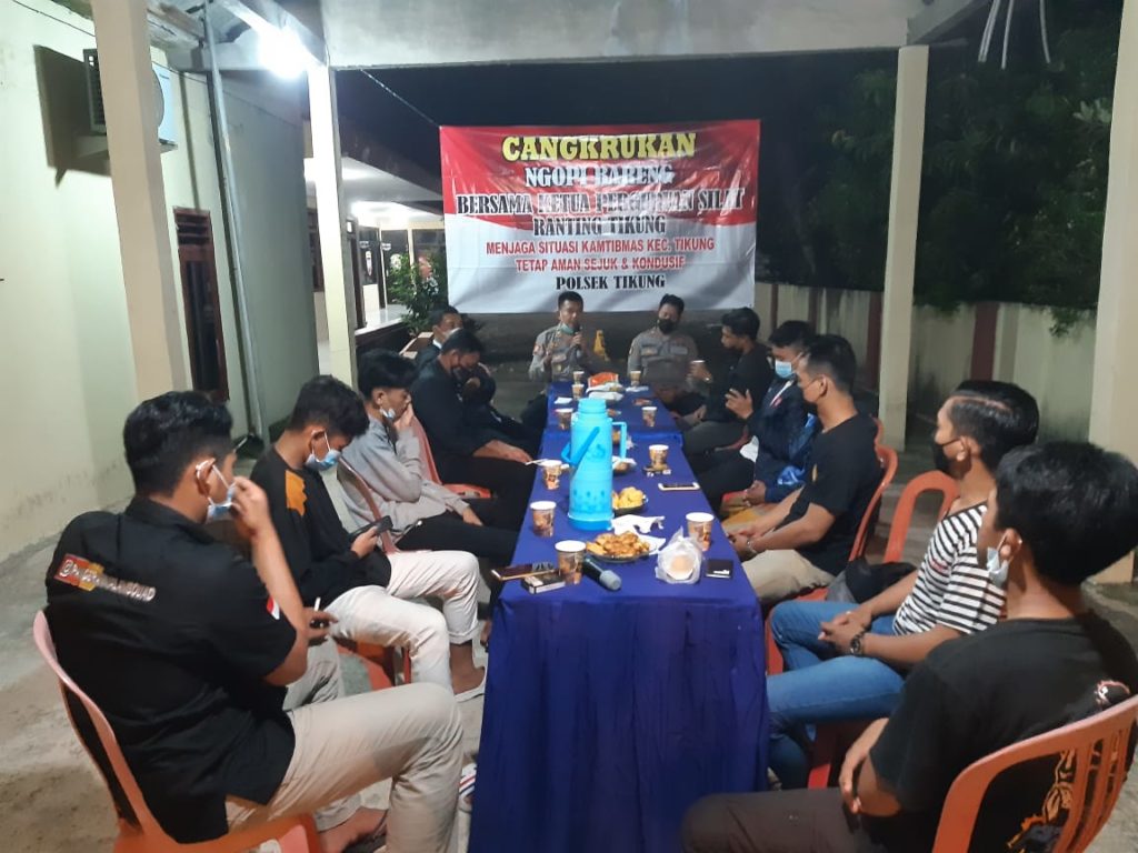 Untuk menciptakan suasana di wilayah Kecamatan Tikung Kabupaten Lamongan yang aman, damai, dan kondusif Polsek Tikung laksanakan giat penggalangan dan cangkruan ngopi bareng Kapolsek Tikung, bersama 15 ketua ranting perguruan silat se – Kecamatan Tikung.