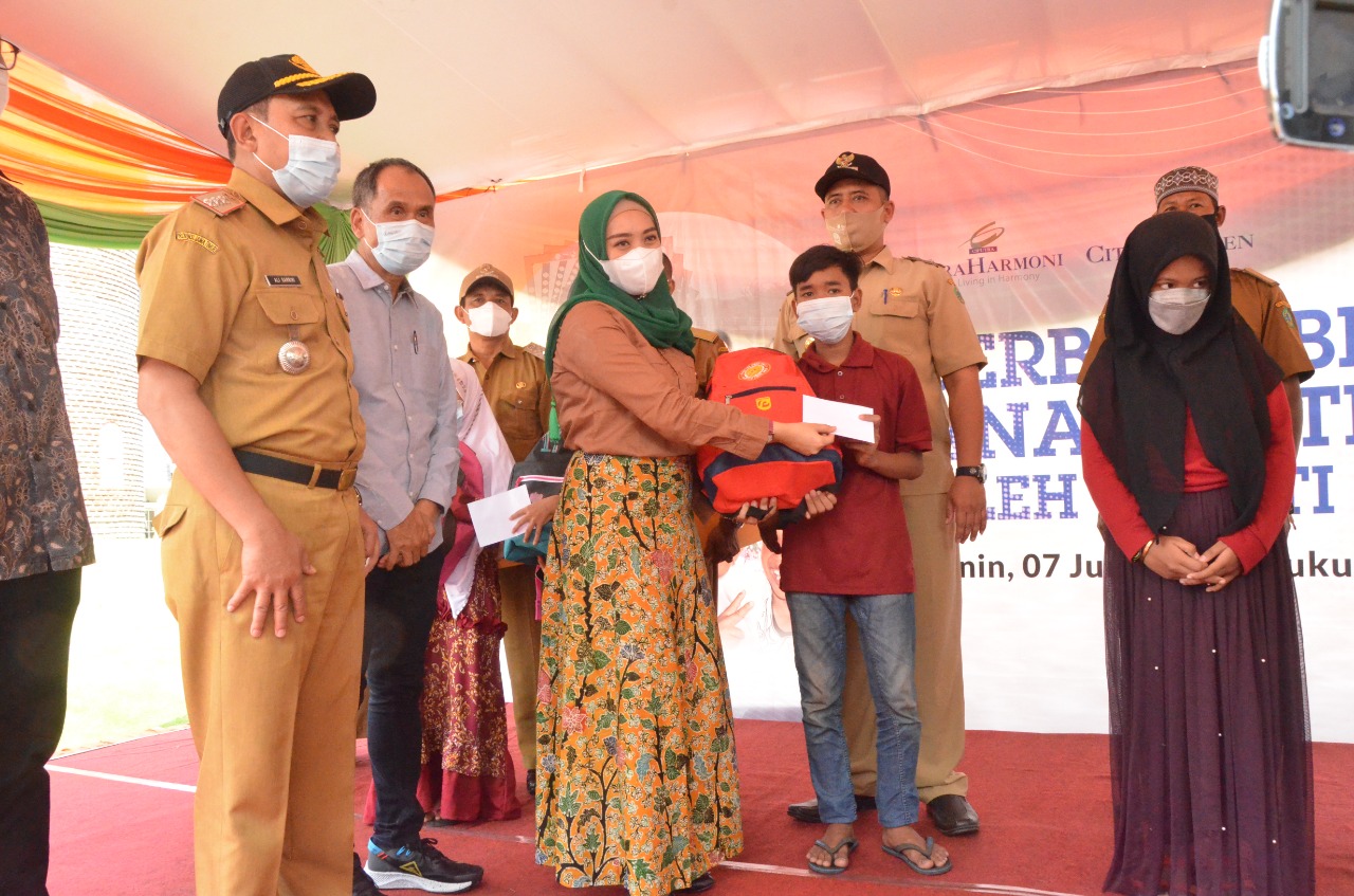 Citra Harmoni berbagi dengan anak yatim, sebagai wujud harmonisasi dengan Pemerintah Kabupaten Sidoarjo hari ini, Senin (7/6) di Cluster Roterdam, perumahan Citra Harmoni.