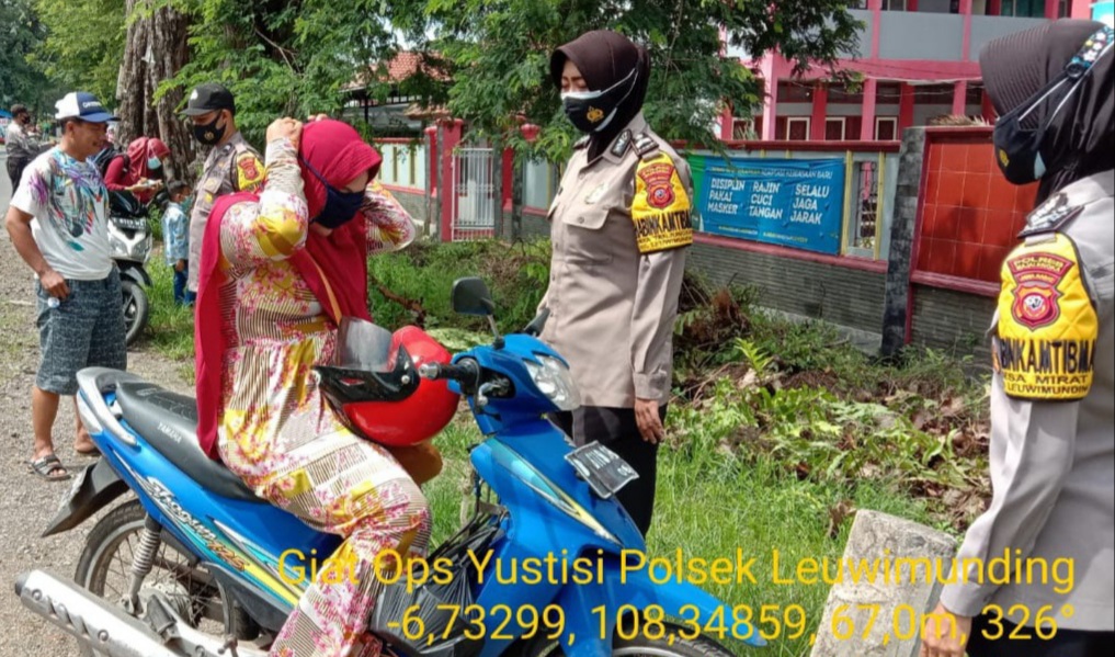 Ops Yustusi Polsek Leuwimunding Polres Majalengka dengan sasaran para pengguna jalan dan warga yang sedang nongkrong di warung lesehan, Dalam operasinya Tim Gabungan menemukan beberapa warga yang melanggar dengan tidak memakai masker sehingga dikenakan beberapa sanksi antara lain teguran lisan dan tertulis. Ungkap Kapolsek Leuwimunding IPTU Edi Purwanto.