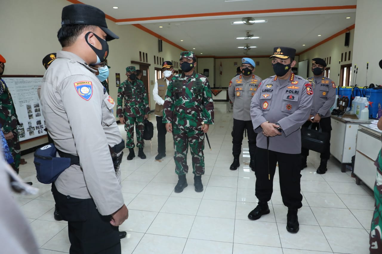 Panglima TNI Marsekal Hadi Tjahjanto dan Kapolri Jenderal Listyo Sigit Prabowo melakukan inspeksi mendadak (sidak) pelaksanaan Pemberlakukan Pembatasan Kegiatan Masyarakat Berbasis Mikro (PPKM Mikro) di Balai Desa Bae, Kabupaten Kudus.