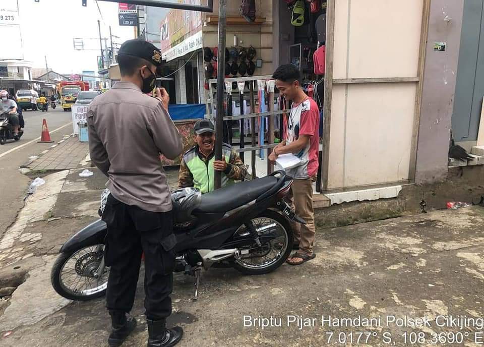 Anggota Polsek Cikijing Polres Majalengka Bripka Achmad Supriyono bersama Briptu Pijar Hamdani melaksanakan sambang dan menghimbau kepada warganya yang sedang nongkrong di warung untuk menggunakan Masker dan berdiam dirumah terkecuali untuk kegiatan yang penting atau mendesak demi berkurangnya penyebaran wabah virus Corona dan senantiasa berprilaku hidup sehat, dalam penyampaian tersebut anggota Polsek Cikijing tetap menjaga jarak warganya hal ini dilakukan untuk meminimalisir penyebaran covid 19.
