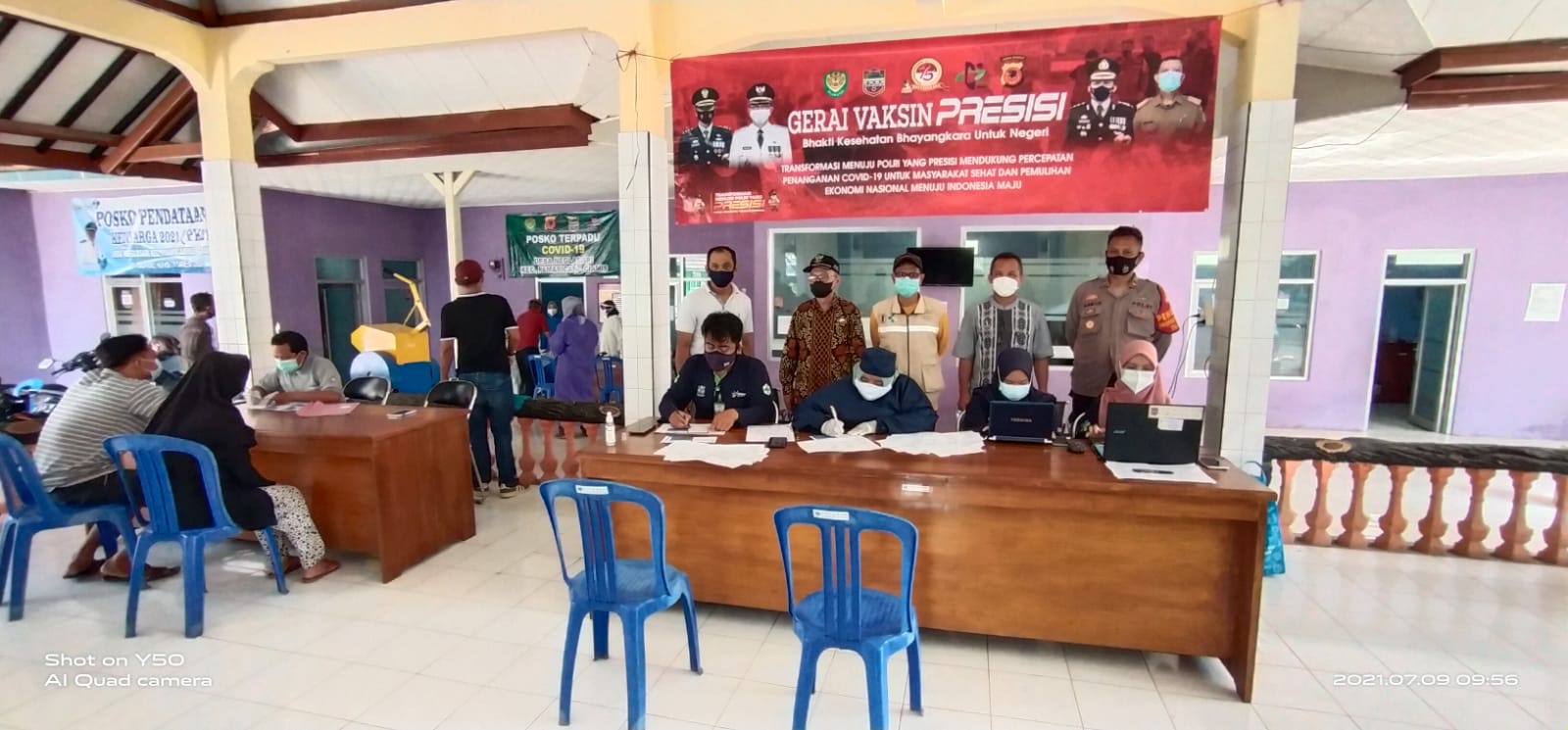 Kapolsek Pamarican Iptu Jajang Sahidin bersama Camat Pamarican Drs. Maman Somantri melakukan monitoring program Satu Hari Satu Juta Vaksin Covid-19 di Gerai Vaksin Presisi Polres Ciamis. Gerai Vaksin Presisi digelar di Aula Kantor Desa Neglasari dan GOR Sidaharja Kecamatan Pamarican, Kabupaten Ciamis, Jawa Barat, Jumat (9 Juli 2021).
