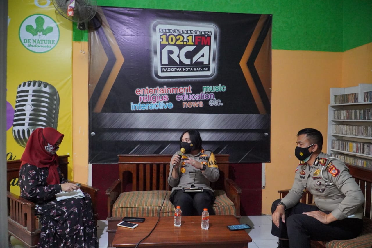 Kapolres Banjar AKBP Ardiyaningsih, S.I.K.,M.Si talkshow bersama Radio RCA Kota Banjar menyampaikan program Vaksinasi dan terkait PPKM Darurat di Kota Banjar.