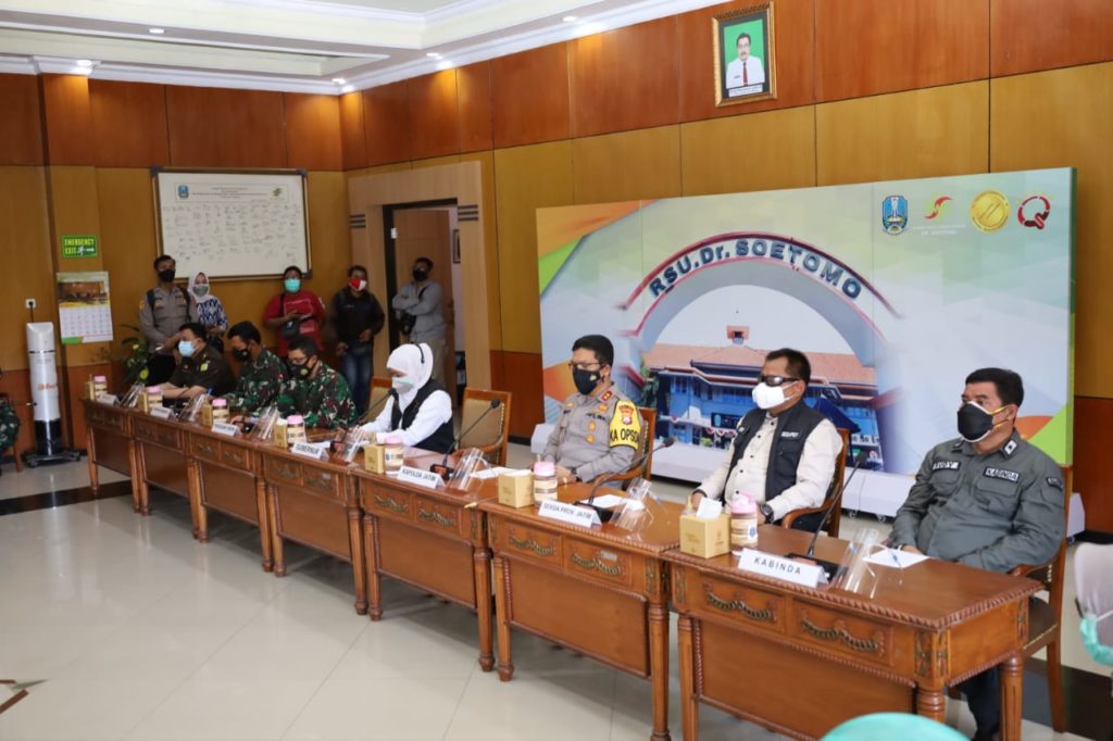 Gubernur Jawa Timur Khofifah Indar Parawansa, Pangdam V Brawijaya Mayor Jenderal TNI Suharyanto, Panglima Komando Armada II (Pangkormada II) Laksamana Muda TNI Iwan Isnurwanto, dan Kapolda Jatim Irjen Pol Nico Afinta, serta didampingi Kabinda Jatim Marsma TNI Rudy Iskandar, Sekda prov, Pejabat Utama Polda Jatim dan Pejabat Utama Kodam V/Brawijaya melakukan pengecekan penambahan ruang ICU, yang terletak di Zona parkir A RSUD Dr. Soetomo Surabaya.