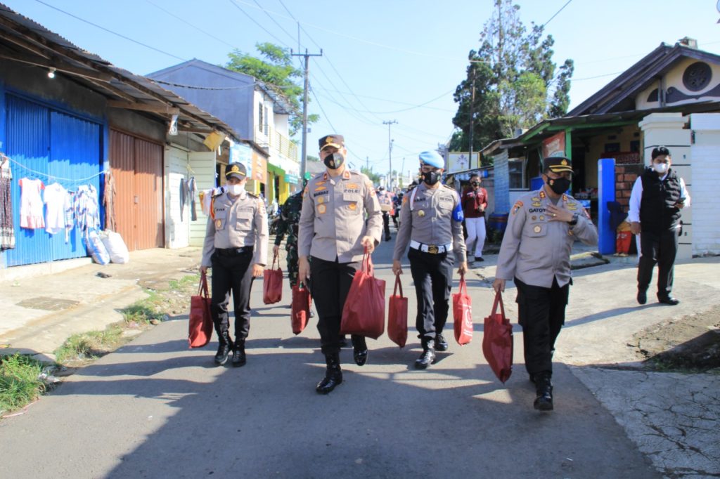 Sekolah Pembentukan Perwira (Setukpa) Lembaga Pendidikan dan Pelatihan (Lemdiklat) Polri menggelar bakti sosial (Baksos) Kampus Polri Peduli untuk warga terdampak Covid-19 di Sukabumi, Jawa Barat, Senin (26/7/2021).