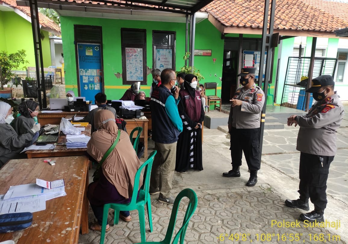 Terlihat Kapolsek Sukahaji AKP Dadang Supriadi beserta anggota memantau langsung giat vaksinasi yang di lakukan oleh petugas medis kepada masyarakat yang belum vaksin