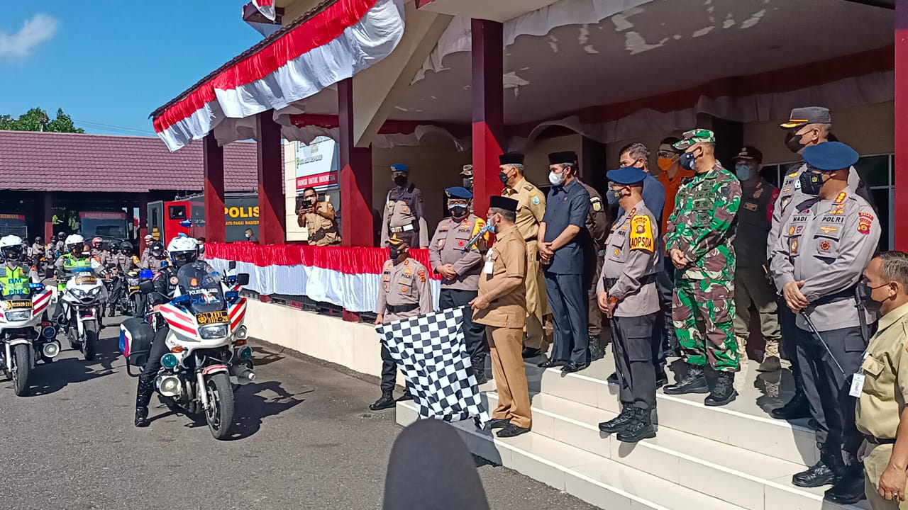 Selaku pemimpin apel dan pelepasan langsung oleh Kapolda Jambi Irjen Pol A Rachmad Wibowo SIK, didampingi Wakapolda Brigjen Pol Yudawan R, Irwasda Kombes Pol Dwi Gunawan, Ketua DPRD Provinsi Jambi Edi Purwanto, Walikota Jambi Syarif Fasha, Dandim 0415/Jambi Kol INF J Hadiyanto, Dansat Brimob Kombes Pol Nadi Chaidir SIK , Karo OPS , Dirlantas ,Kepala SPN, Dirreskrimum Kombes Pol Kaswandi Irwan, Karo SDM, Kabag Binkar Kapolresta Jambi,Kepala BPBD Provinsi Jambi, serta Pejabat Utama Polda Lainnya, dan forkopimda Provinsi Jambi.