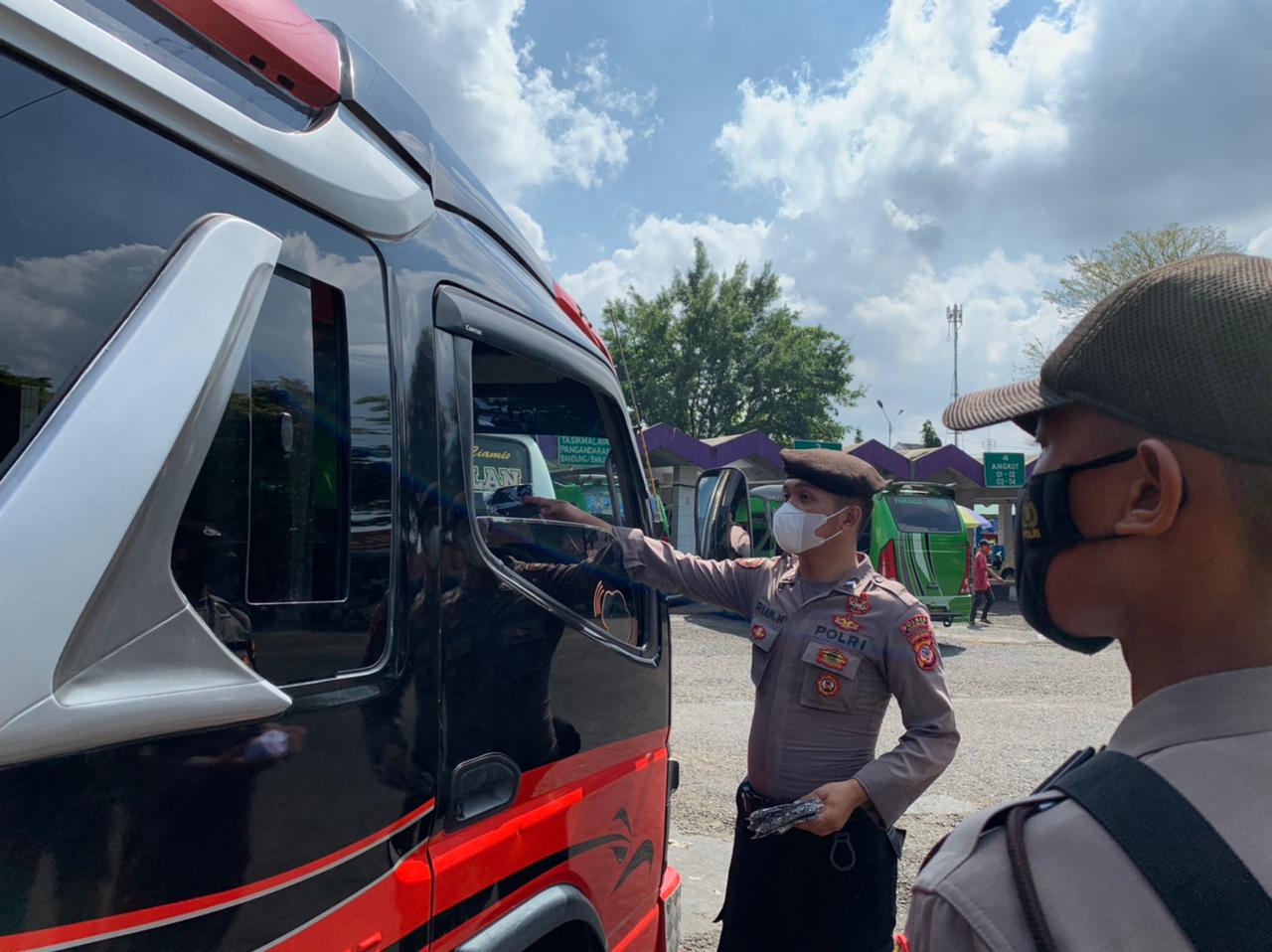 Satuan Samapta Polres Ciamis Polda Jabar menyampaikan himbauan protokol kesehatan terhadap warga masyarakat Kabupaten Ciamis. Himbauan ini dilaksanakan di kawasan Terminal Ciamis, Kabupaten Ciamis, Jawa Barat, Selasa (27 Juli 2021).