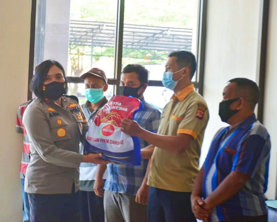 Berlokasi di Mapolres Banjar Jalan Siliwangi nomor 145 Kota Banjar, Kapolres Banjar AKBP Ardiyaningsih, S.I.K.,M.Si. membagikan bansos kepada para pegawai honorer di lingkungan Polres Banjar.