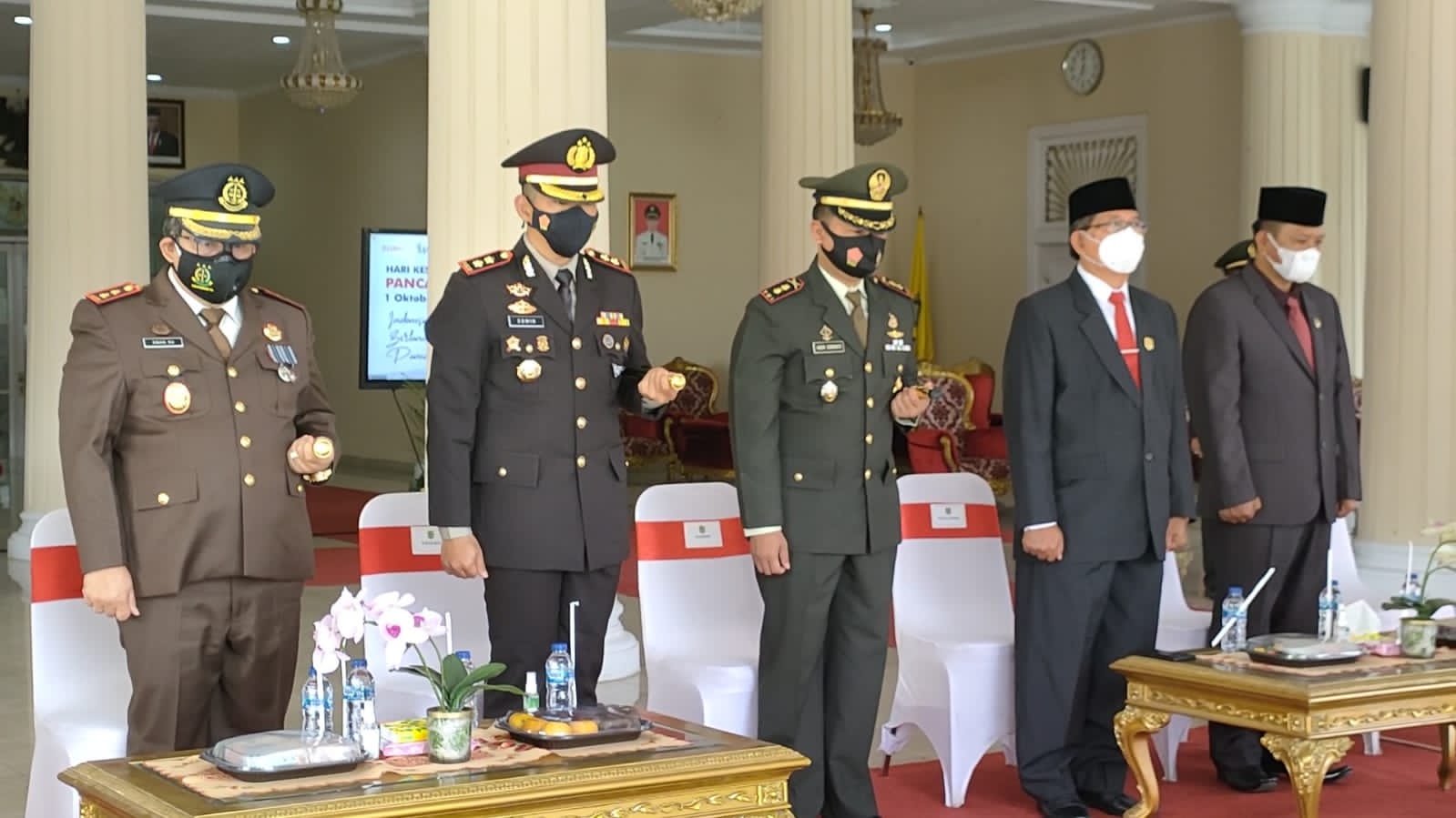 Pelaksanaan upacara Peringatan Hari Kesaktian Pancasila 2021 dengan tema “Indonesia Tangguh Berlandaskan Pancasila” yang diikuti oleh satu peleton dari TNI/Polri, Sat Pol PP, Dishub dan para tamu undangan itu berjalan dengan khidmat.