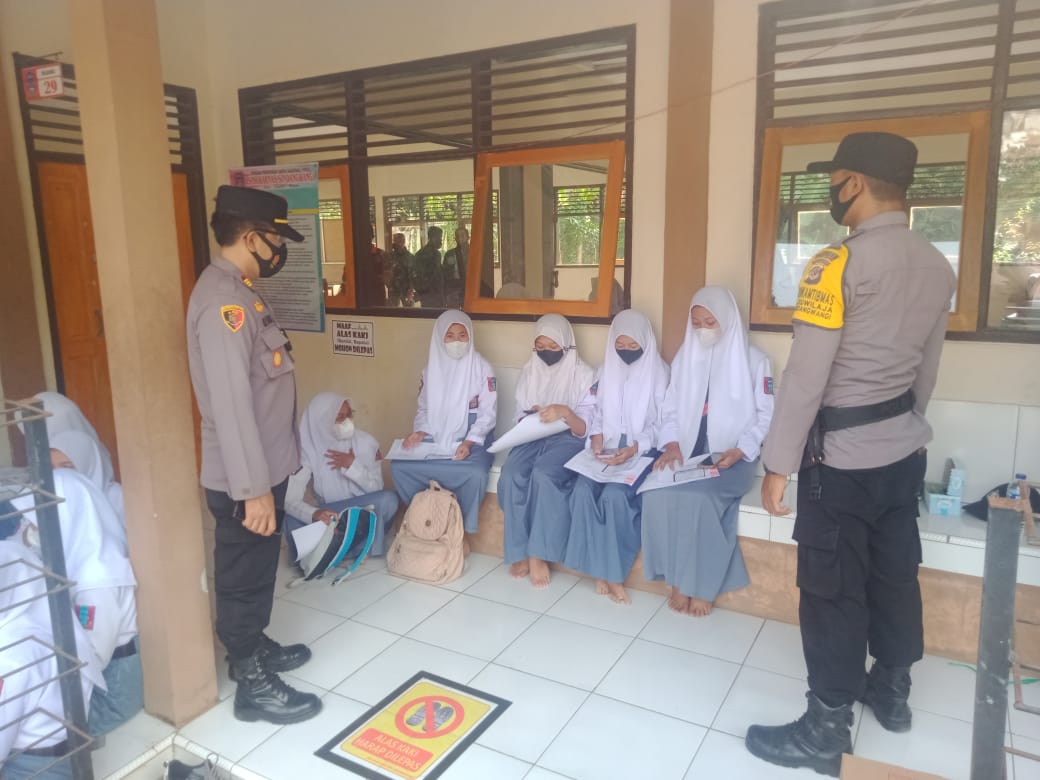 Kapolsek Sindangwangi, Polres Majalengka, Polda Jabar, AKP Deni Rusnandar beserta anggota Bhabinkamtibmas dan Babinsa memantau pembelajaran tatap muka (PTM) di sejumlah sekolah di wilayah Polsek Sindangwangi, Sabtu (2/10/2021).