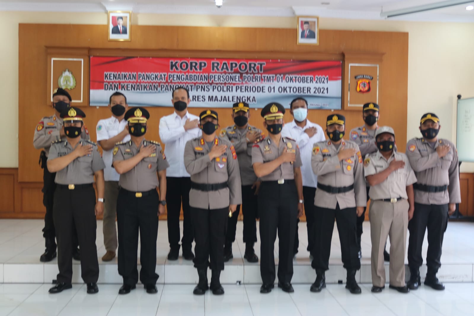 Kapolres Majalengka Pimpin Upacara Korp Raport Kenaikan Pangkat Pengabdian TMT 1 Oktober 2021