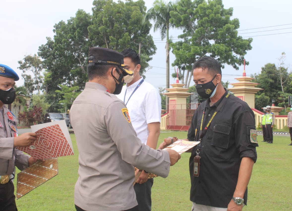 Penyerahan piagam penghargaan tersebut dilaksankan saat apel rutin di lapangan Mapolres Muaro Jambi pada Senin 04/10 pukul 08.00 wib.