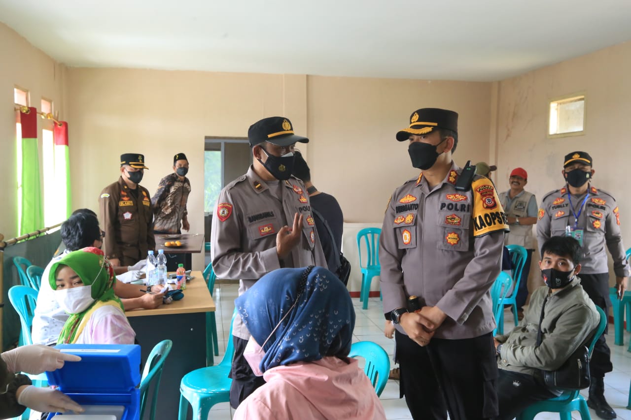 Kapolres Garut AKBP Wirdhanto Bersama Dandim 0611/Garut Letkol Czi Dr Deni Iskandar Panatau Langsung kegiatan penyuntikan vaksin Covid-19 yang dilaksanakan di Kantor Desa Mekarsari kepada masyarakat umum di wilayah Kecamatan Bayongbong Kabupaten Garut.