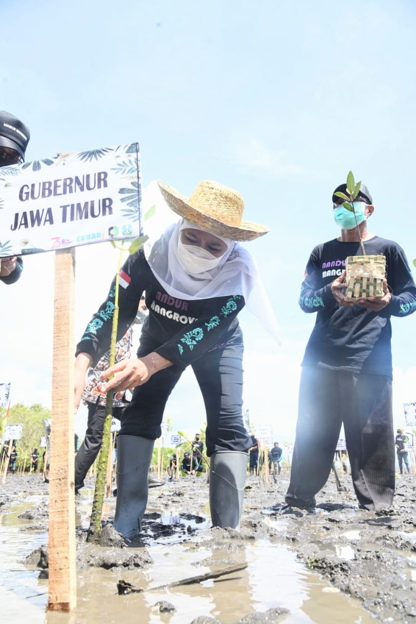 Terkait target restorasi mangrove di Jawa Timur, Khofifah mengatakan saat ini Pemprov Jatim tengah menunggu peta dari Kementerian Pertanian. Namun demikian, Pemprov Jatim telah mendahului proses penanaman mangrove dengan melibatkan sangat banyak stakeholder, relawan, dan pemerintah maupun forkopimda kabupaten/kota.
