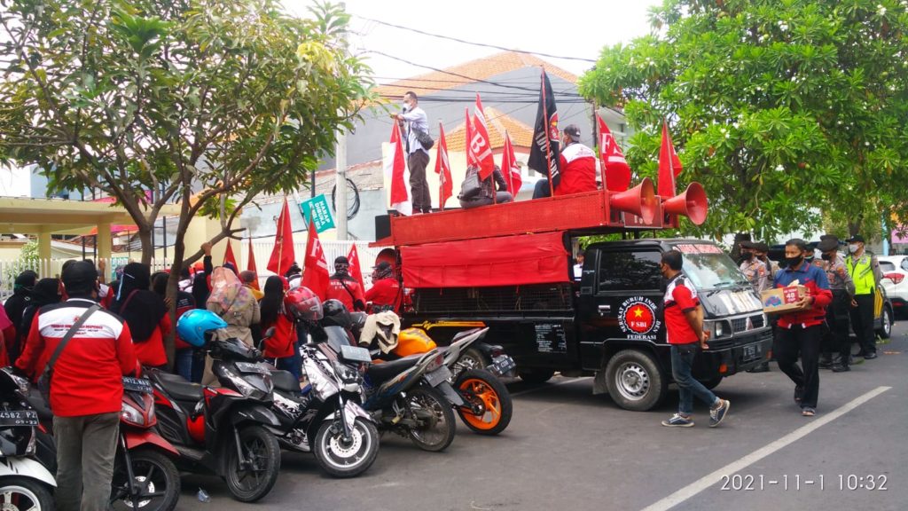 Kembali pergerakan demo unjuk rasa yang tak pernah tiada berhenti,hari senin tanggal 1/11/ 2021 dimulai pukul 08.00 Wib,tempat titik kumpul PT New Era Desa Ketajen Kecamatan Gedangan-Sidoarjo, telah berlangsung kegiatan pendemoan yang tertuju kepada PN Sisoarjo,Pendopo Pemkab Sidoarjo,pemberangkatan Aksi dan Orasi Massa elemen buruh Serikat Pekerja FSBI Kabupaten Sidoarjo,massa diperkirakan berjumlah 200 orang,dengan Koorlap Edi Kuncoro dan Bung Alan .