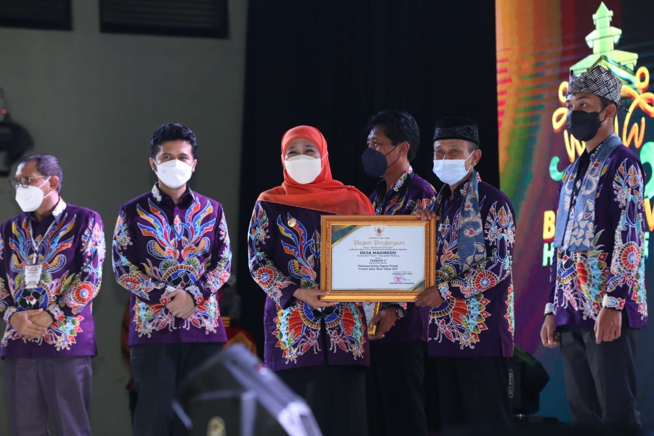 Dalam kesempatan ini, Gubernur Khofifah turut menyerahkan penghargaan kepada pelaksana terbaik gotong royong tingkat Provinsi Jatim Tahun 2021, dimana terdapat 4 pelaksana terbaik kategori desa dan 4 kategori kelurahan. Untuk kategori Desa Terbaik I diraih Desa Pondok, Kecamatan Babadan, Kabupaten Ponorogo, Terbaik II diraih Desa Madiredo, Kecamatan Pujon, Kabupaten Malang, Terbaik III diraih Desa Kluncing, Kecamatan Licin, Kabupaten Banyuwangi dan Terbaik IV diraih Desa Sidodadi, Kecamatan Garum, Kabupaten Blitar.