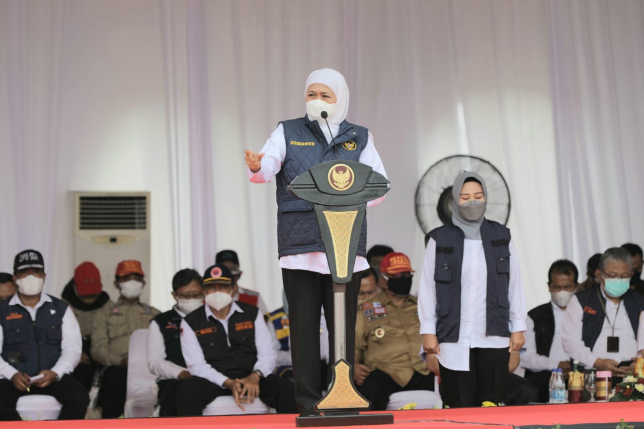 Dihadapan peserta Apel Siaga Banjir, Khofifah mengingatkan kepada seluruh jajaran dinas maupun OPD yang bertugas untuk meningkatkan kewaspadaan sekaligus mengantisipasi Banjir melalui deteksi dini, pemetaan, kewaspadaan dan kesiapsigaan utamanya dalam checking seluruh alat pompa, kondisi AKI, alat penerangan, hingga alat alat berat sedetail mungkin.