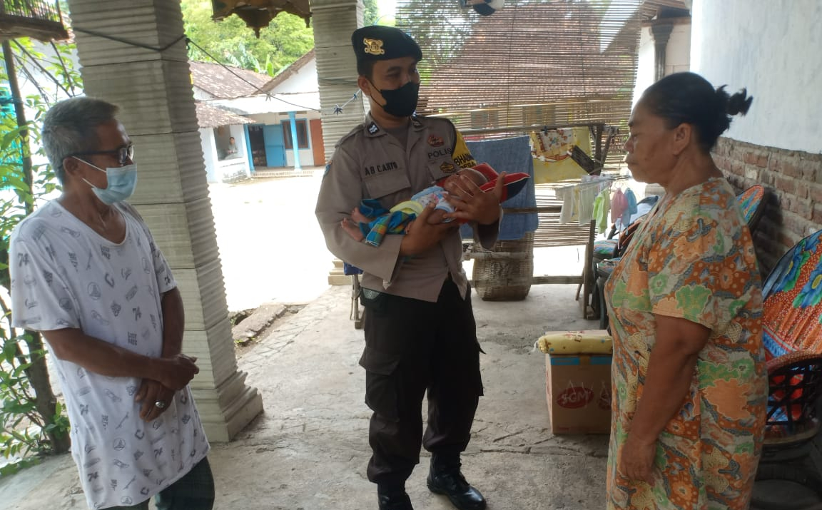 Di salah satu tempat warga Desa Gontor Kecamatan Mlarak Kabupaten Ponorogo,Bhabinkamtibmas Polsek Mlarak Aiptu Agus Bowo Cahyono menjenguk warga yang mempunyai seorang bayi yang berumur 4 hari dilahirkan oleh seorang ibu positif covid 19 dan dinyatakan telah meninggal dunia.
