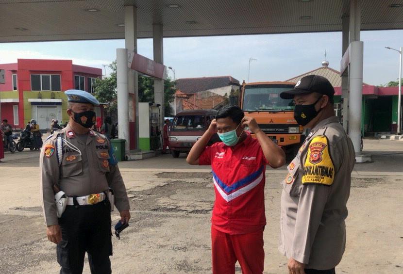Kegiatan tersebut tidak hanya membagikan masker gratis namun juga memberikan himbauan kepada masyarakat pengguna jalan