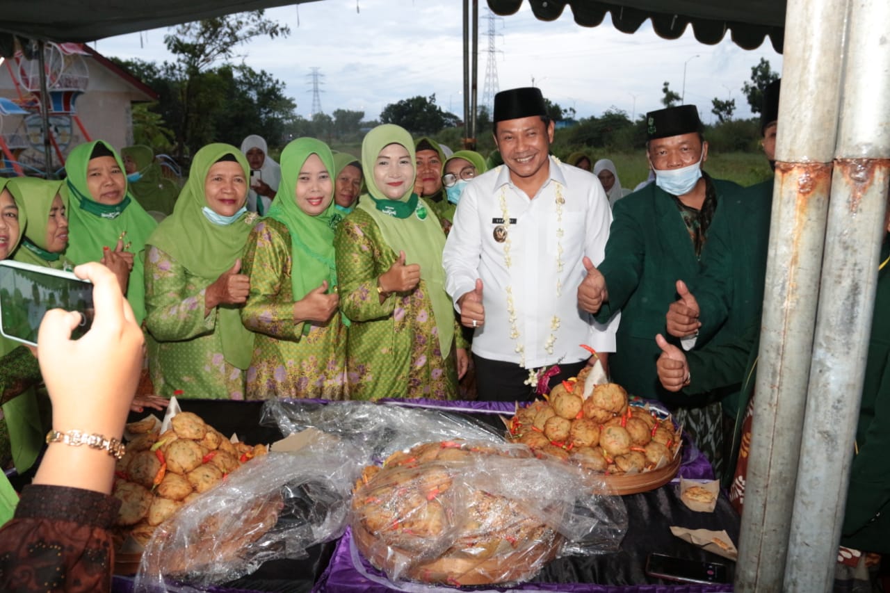 Wakil Bupati Sidoarjo H. Subandi SH dalam sambutannya saat membuka Gelar UMKM memperingati Maulid Nabi Muhammad SAW 1443 H di lapangan sepakbola Desa Wunut Kecamatan Porong, Kamis Sore, (5/11). Puluhan pelaku UMKM hadir meramaikan gelar UMKM yang diselenggarakan MWCNU Kecamatan Porong tersebut.