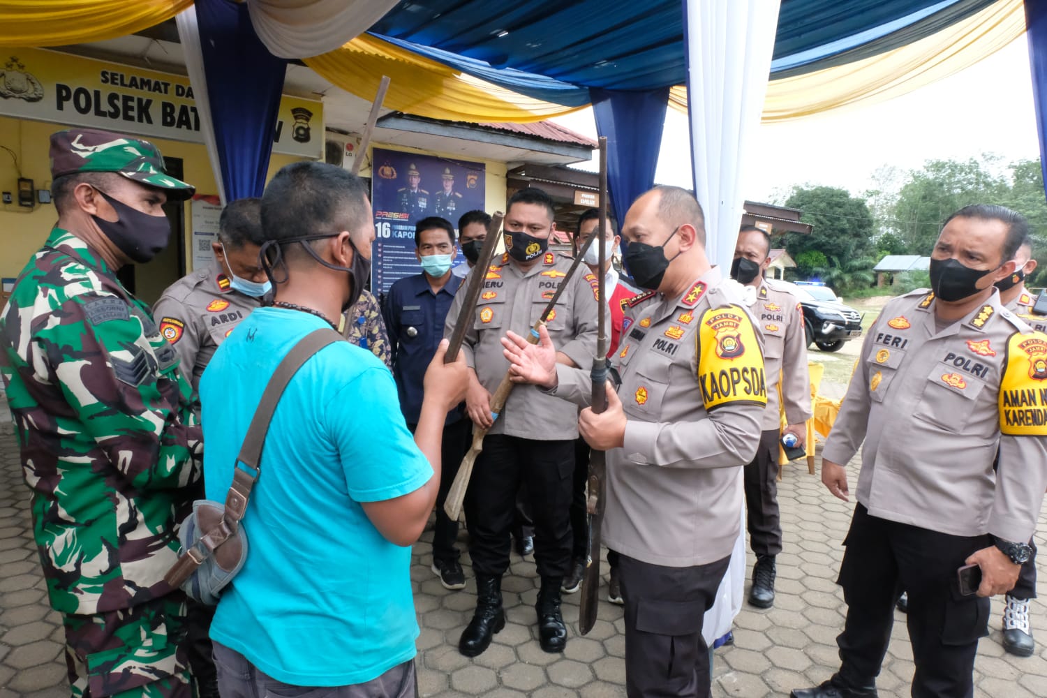 ” Pada kesempatan ini, Kapolda Jambi menerima 5 (Lima) pucuk Senjata Api jenis Kecepek yang diserahkan oleh Temenggung Ngelembo selaku perwakilan SAD,” jelas Alumni Akpol 1997 ini