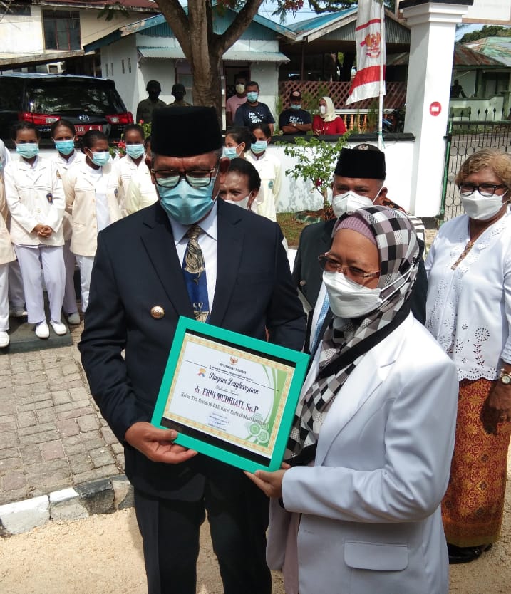 - Penyerahan penghargaan kepada Ketua Tim Covid-19 RSU Karel Sadsuitubun