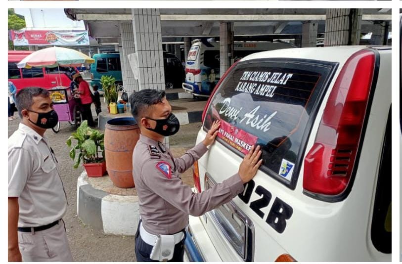 Kepolisian Resor Ciamis Polda Jabar melalui Satuan Lalu Lintas melaksanakan edukasi protokol kesehatan pencegahan Covid-19 kepada warga masyarakat. Edukasi ini kembali dilaksanakan dengan cara menempelkan stiker “Ayo Pakai Masker” di kendaraan umum pengangkut barang dan orang yang melintas di Kabupaten Ciamis.