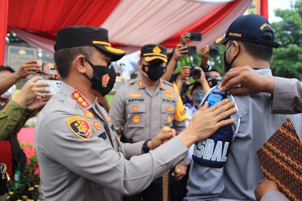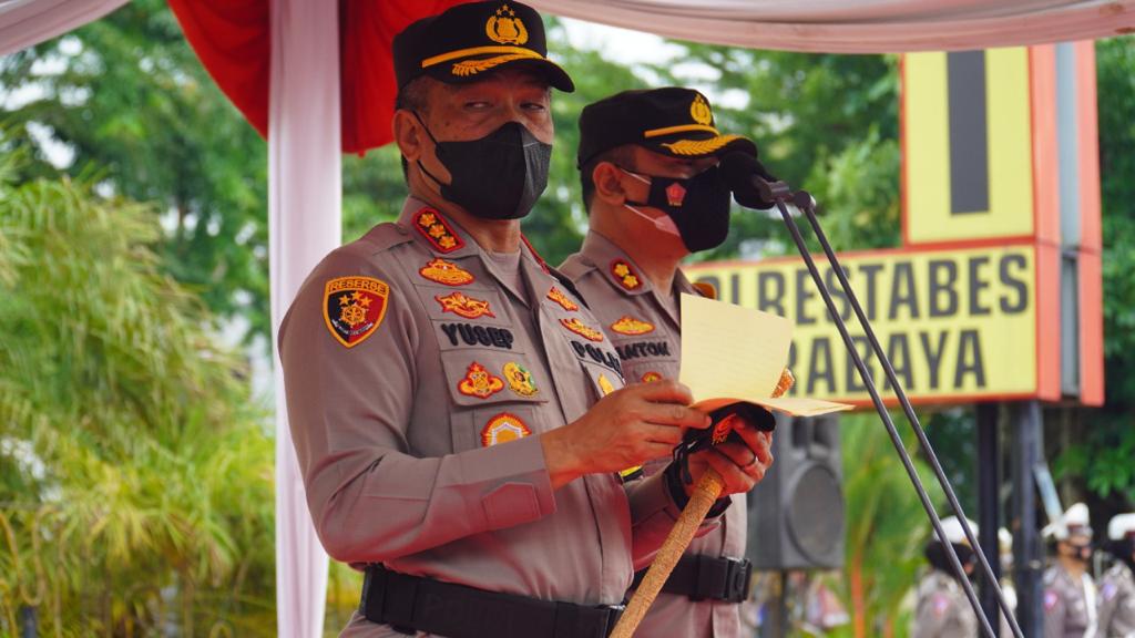Kapolrestabes Surabaya, Kombes Pol A. Yusep Gunawan, S.H., S.I.K., M.H., M.Han didampingi Kapolres Pelabuhan Tanjung Perak, AKBP Anton Elfrino memimpin Gelar Pasukan Operasi Zebra Semeru 2021 di Depan Mako Polrestabes Surabaya, Senin (15/11/2021).