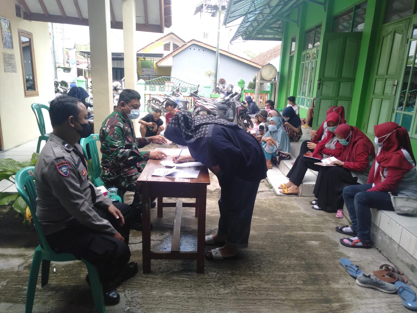 Keberadaan personel TNI Polri dalam kegiatan tersebut juga untuk membantu menertibkan warga masyarakat dalam antrian sehingga tidak menimbulkan kerumunan.