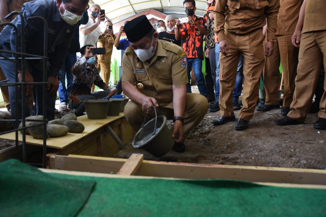 Wakil Bupati Deli Serdang H.M. Ali Yusuf Siregar menghadiri peletakan batu pertama renovasi pembangunan Masjid Ikhlasiyah di Dusun V, Desa Bandar Labuhan, Kecamatan Tanjung Morawa, Deli Serdang, Sumatera Utara, Selasa (16/11/2021).